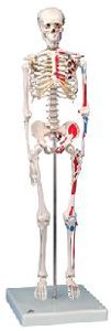 Mini Skeleton “Shorty“ Model with painted muscles, on base Mini Skeleton Model “Shorty“ with painted muscles, on baseTop of the range mini human skeleton. Skillful 3B Scientific engineers using powerful hardware and software optimized the process of reproducing miniatures in order to keep all anatomical details and structures even at half natural size (80 cm). The skull can be removed and disassembled into three parts (skullcap, base of skull, mandible). The arms and legs are removable. The hip joints are specially mounted so their natural rotation can be demonstrated. The portrayal of the muscle origins (red) and insertions (blue) on the left half. The muscles are numbered.Measurements:94cm Weight: 1,7kg Product photo may not exactly match the product offered for sale. Please refer to the product description.