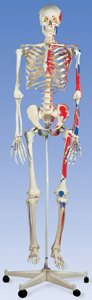 Muscle Skeleton Max Model, on 5 feet roller stand Muscle Skeleton Model Max, on 5 feet roller standThis version contains all standard benefits of a 3B Scientific® skeleton but additionally offers representations of the structural interaction between bones and muscles. It depicts over 600 structures of medical/anatomical significance including muscle origins (red) and insertions (blue) on the left side as well as hand numbered bones, fissures and foramina on the right side. An amazing replica of the human skeleton.• Excellent price-performance ratio • 3-year warranty • First-class natural cast “Made in Germany“ • Manual final assembly • Made of durable, unbreakable plastic • Almost realistic weight of the approx. 200 bones • Life-size • 3-part mounted skull • Individually inserted teeth • Limbs are quick and easy to remove • Stand and dust cover includedMeasurements:170 cm Weight: 8 kg Product photo may not exactly match the product offered for sale. Please refer to the product description.