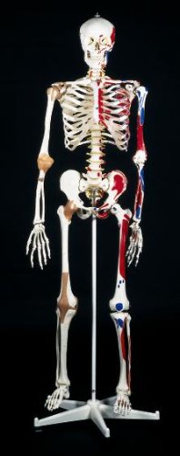 Super Human Skeleton Model "Sam" - Flexible with Muscles and Ligaments on a Pelvic Mounted Stand. Of course this top-of-the-line version contains all the benefits you have come to expect in our high-quality 3B Scientific® standard skeletons. Sam additionally allows you to demonstrate the movements of the skull and head joints as well as all natural human postures due to the fully flexible vertebral column. The unique combination of flexible vertebral column, muscle origins and insertions, numbered bones, flexible joint ligaments and a disc prolapse between the 3rd and 4th lumbar vertebrae display over 600 structures of medical/anatomical interest in this top human skeleton model. Perfect for in depth study of the human skeleton and more. To sum it up: all standard benefits of a 3B ScientificSkeleton model, over 600 hand-numbered and identified details, hand-painted muscle origins and insertions, flexible joint ligaments, flexible vertebral column, emerging spinal nerves and vertebral arteries, disc prolapse between l3 and l4, excellent price-performance ratio, 3-year warranty, First-class natural cast “Made in Germany”, manual final assembly, made of durable, unbreakable plastic, almost realistic weight of the approx. 200 bones, life-size, 3-part mounted skull, individually inserted teeth, stand and dust cover included. Measures 66.9" height.